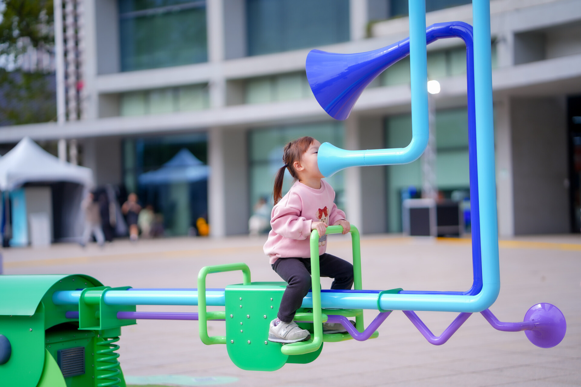 「實驗新秀」組(60萬)優選—由「屾之製造所」創作的《聽你所說的當下》,則大膽挑戰一般人的慣性,設計出讓兩個人背對而坐的翹翹板,觀眾背對著被坐在兩頭,利用話筒說出此刻想傳達的話,但說出口的語言會即時被轉譯為旋律,以音樂的形式流向對方,藉此驗證抽離語言和字彙之後,人們是否仍能聽懂彼此?